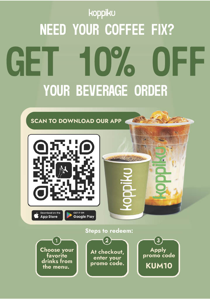 10% OFF on all coffee orders via the Koppiku App 50% OFF your first drink when you order through the app (plus your 10% discount!)