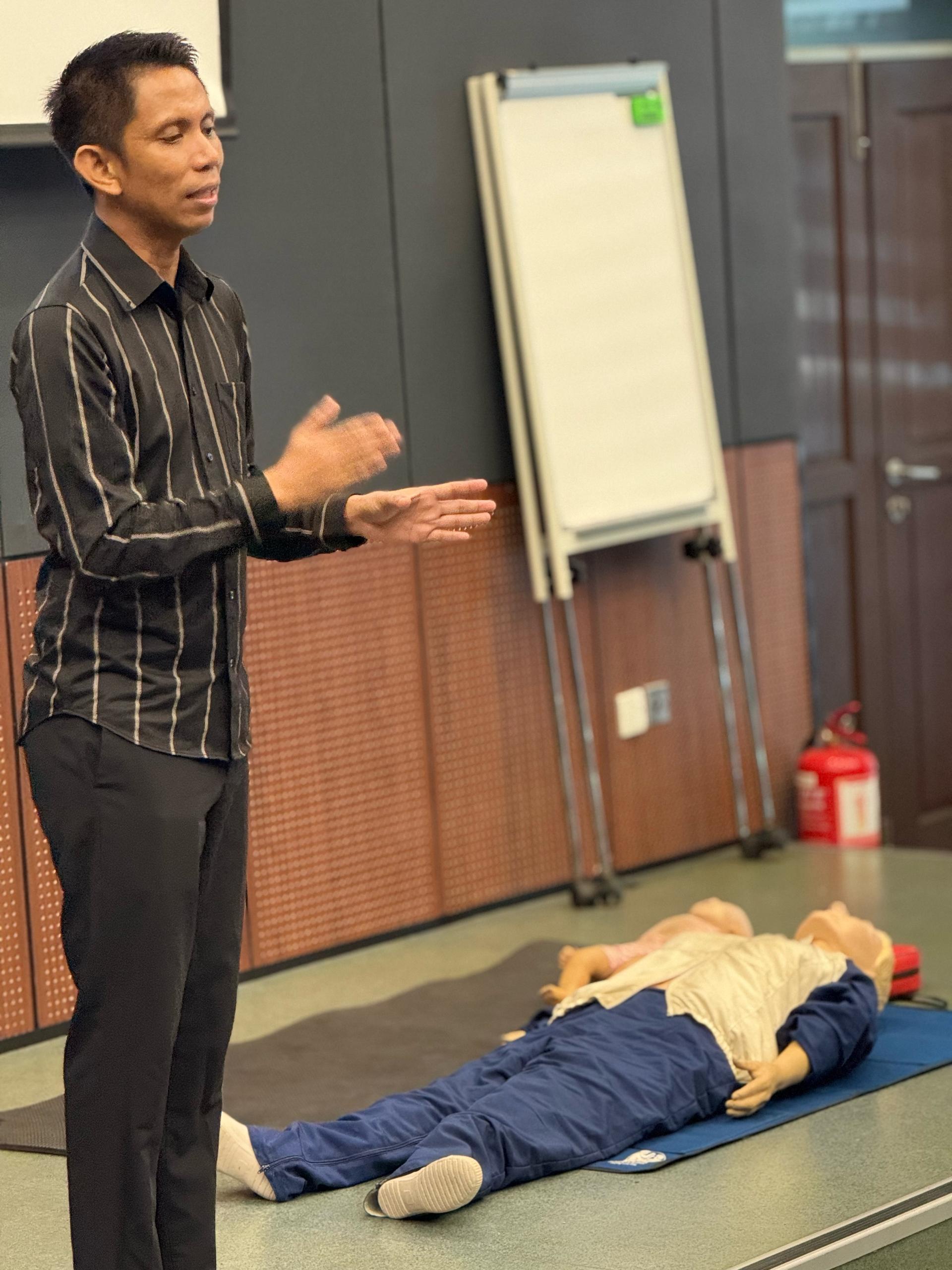 Kursus ini telah dikendalikan oleh pasukan terlatih dari Pusat Perubatan Universiti Malaya (PPUM), dengan ceramah utama disampaikan oleh En. Mohd Zaidi bin Mohd Daud yang berpengalaman luas dalam latihan Basic Life Support dan penggunaan AED. Beliau turut dibantu oleh beberapa fasilitator profesional yang memberi bimbingan secara langsung kepada para peserta.